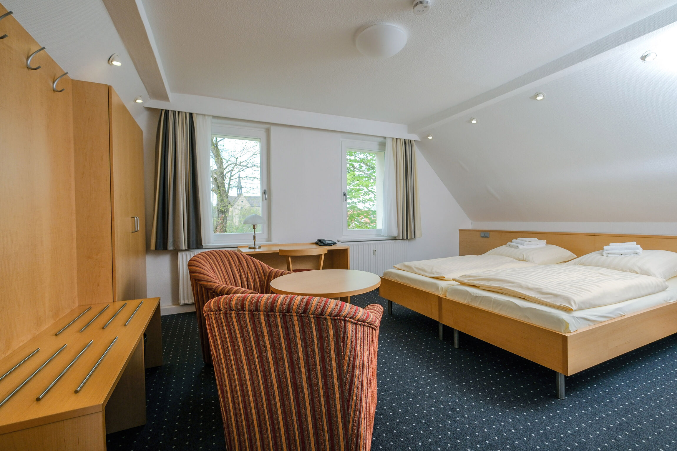 Moderne, ruhige Zimmer für erholsamen Schlaf nach produktiven Tagungen.