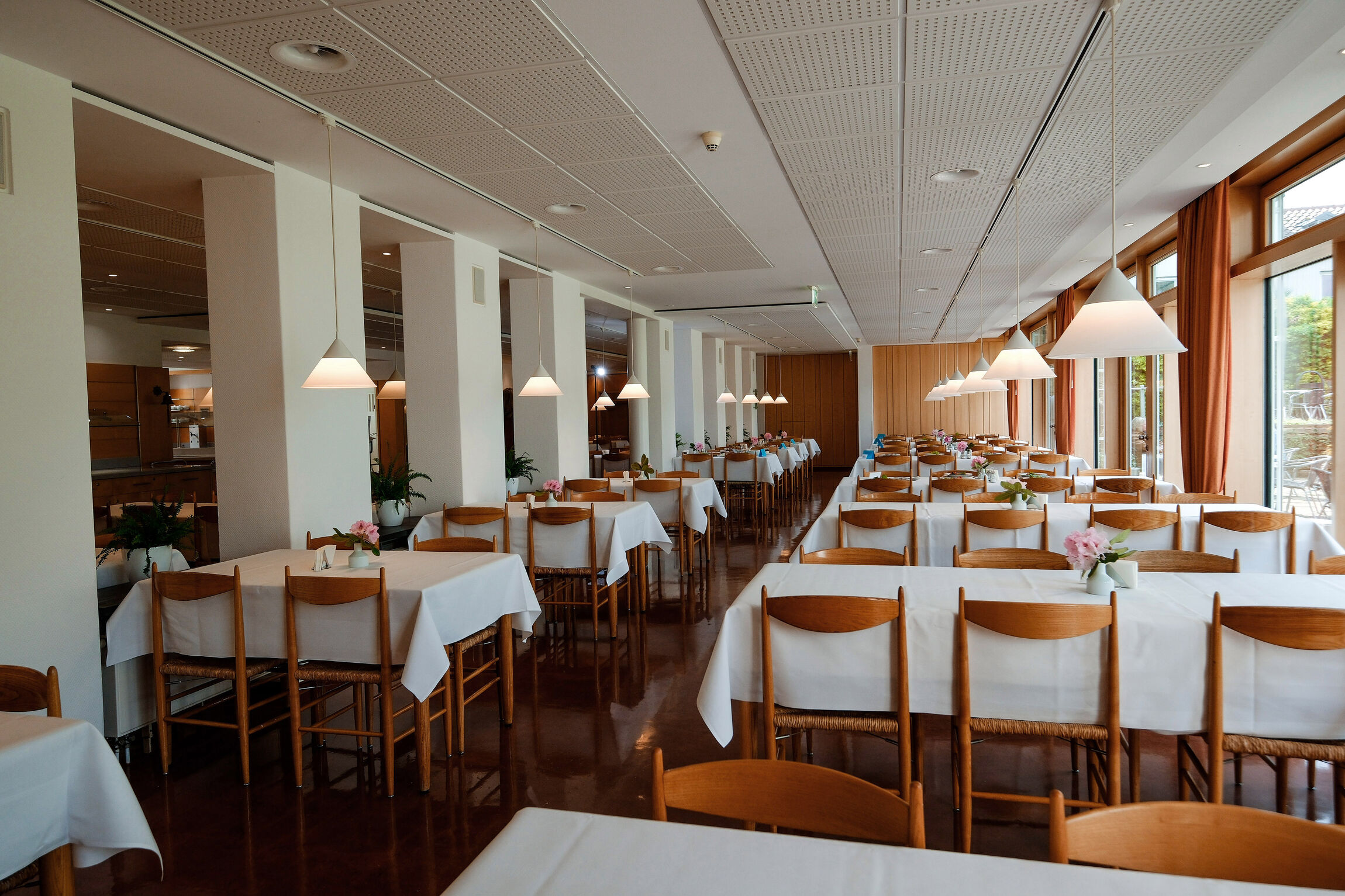 Unser heller, freundlicher Speisesaal bietet Platz für bis zu 200 Personen